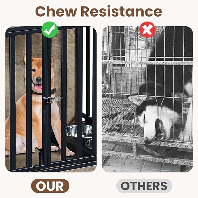 - 【Flip-Up Top Opening】The top of the dog crates is composed of a wooden tabletop and a door. Normally, it can be used as your side table. When you open the door, it transforms into a semi-open playpen, facilitating interaction with your dog.