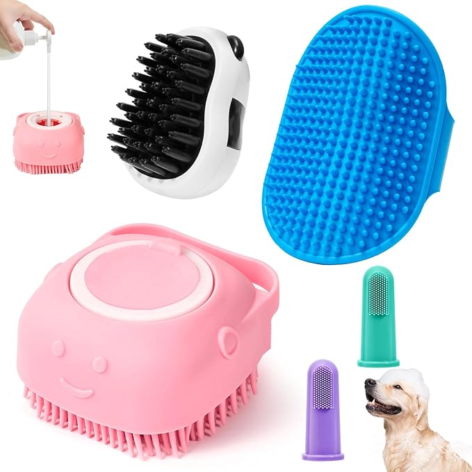 - Pets Bath Essential Set: This dog shower brush set contains 3 PCS brushes with different functions and 2 pcs toothbrush, which can effectively solve your pet's bathing, hair removal, massage, grooming problems. Let your pet fall in love with bathing and enjoy bath time.Dogs/cats essential,dogs shower gift
