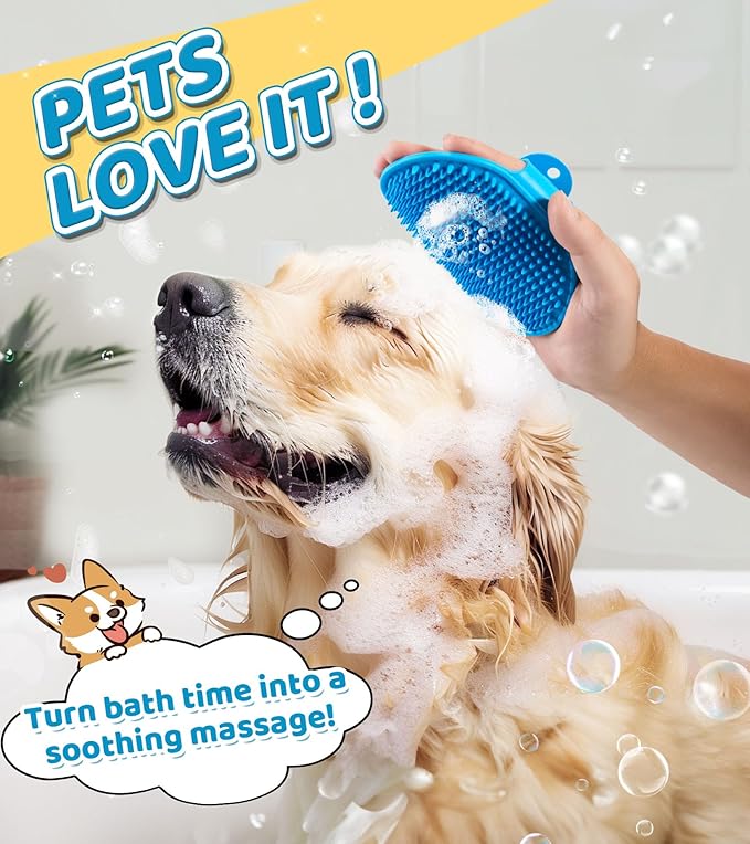 - Safe and Soft: This dog washing brush set is made of high-quality food-grade silicone and TPR rubber materials, which are soft, safe and durable.The ultra soft Dog shampoo brush won't rub pet's delicate skin Make your pet's bath time simple, safe and effective