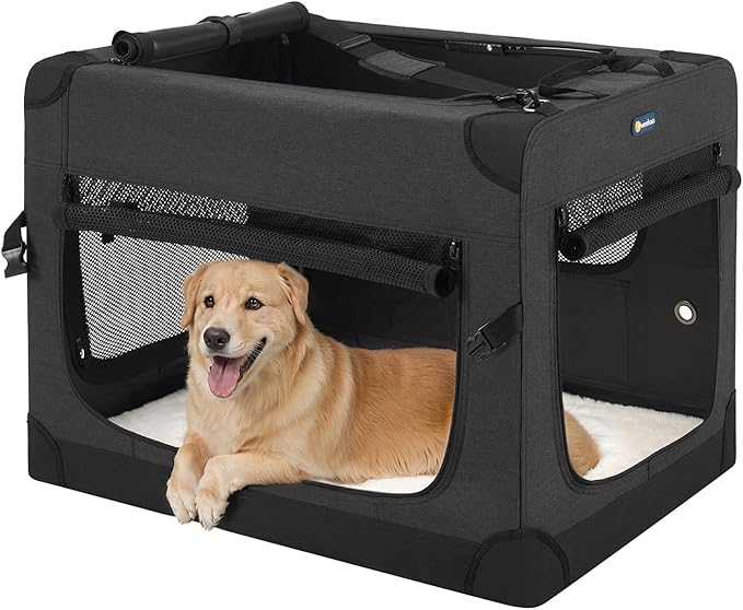 - Stable and Foldable Structure - This soft dog crates is made of all-metal frame structure, strong and stable. Collapsible steel frame with retractable springs makes setup simple (no tools needed) and fold flat for easy transport and compact storage. Easy carry with handle or strap. Adjustable strap included.