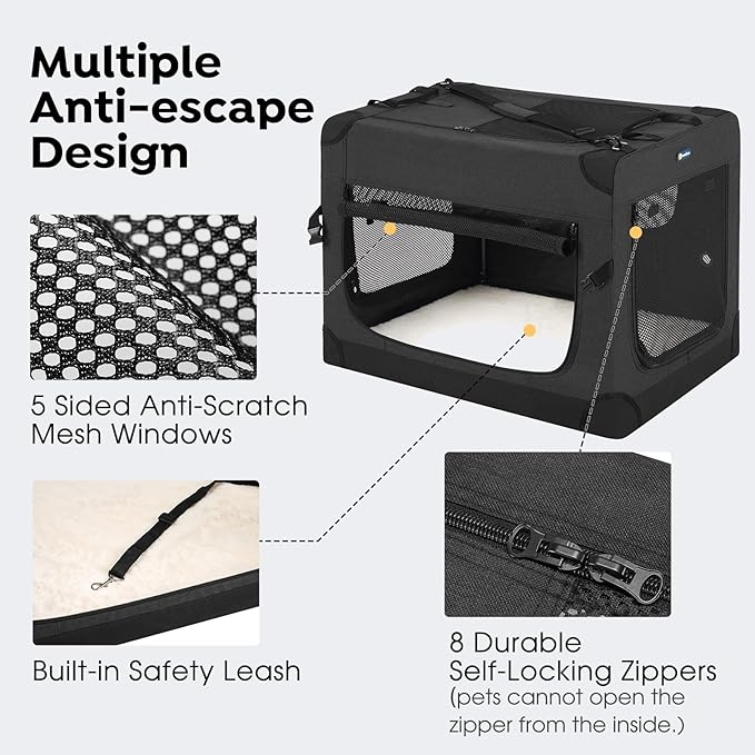 - Multiple Anti-Escape Design - 5 sided anti-scratch mesh windows, 6 durable self-locking zippers make it impossible for pets to open the zipper from the inside, built-in safety leash can be attached to a dog collar, giving owners more peace of mind.