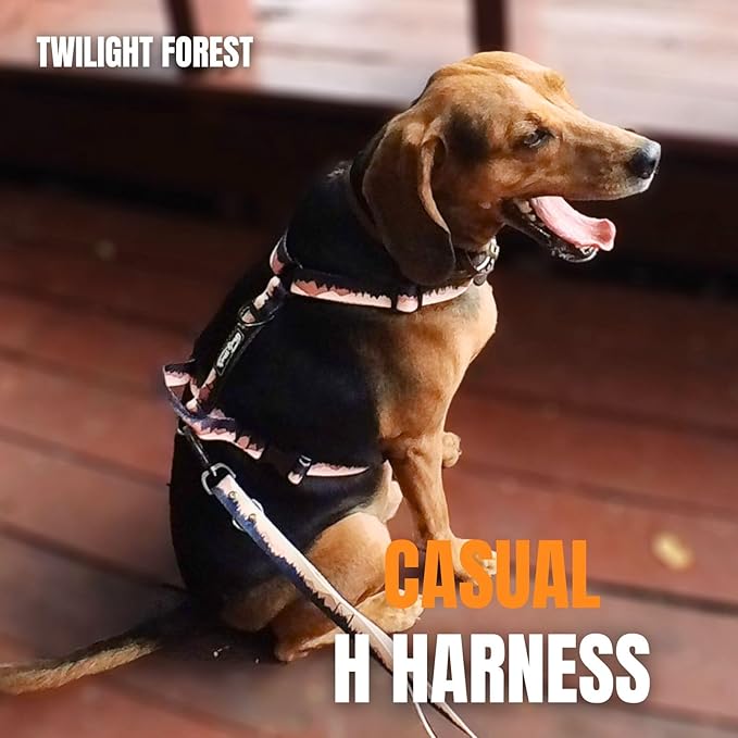Casual H Dog Harness, No-Pull Pet Harness with 2 Leash Clips, Twilight Forest Gradiant Color, Adjustable Soft Padded Dog Vest for Small Medium Large Dogs (L)