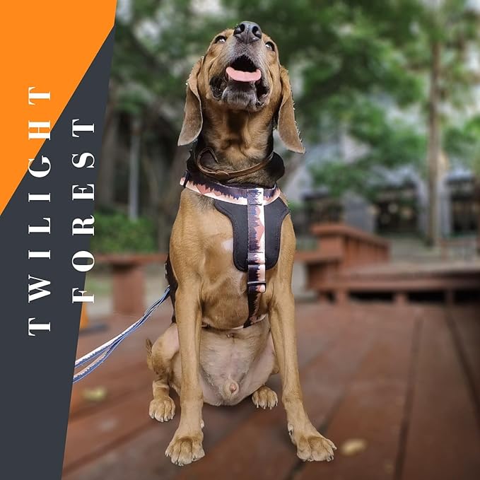 Casual H Dog Harness, No-Pull Pet Harness with 2 Leash Clips, Twilight Forest Gradiant Color, Adjustable Soft Padded Dog Vest for Small Medium Large Dogs (XL)