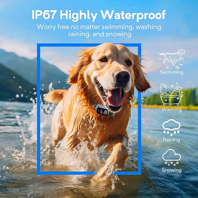 - User Friendly & IP67 Waterproof: Our dog bark collar, thoughtfully designed for effortless use, operates without the need for manual control through a remote. Simply set it up effortlessly, and let the anti bark collar work its magic automatically. With an IP67 waterproof rating, it seamlessly transitions between indoor and outdoor activities, excelling in hikes, swims, and rainy weather