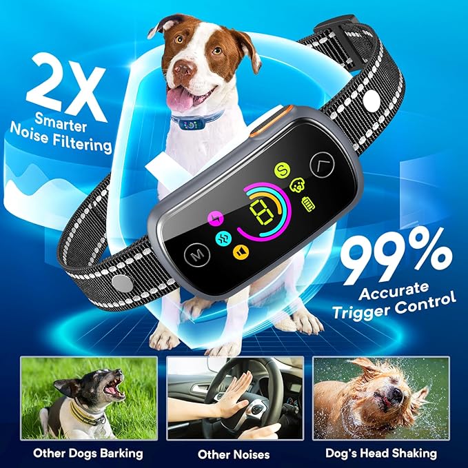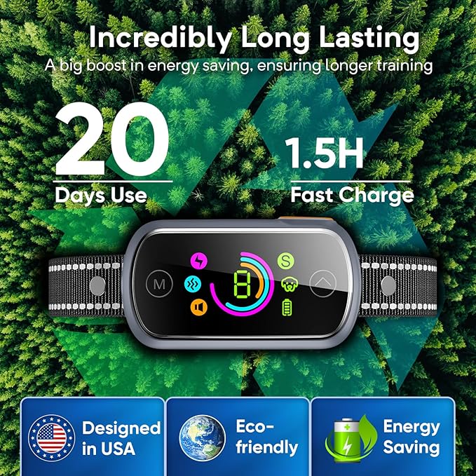 - 2024 Upgraded Barking Collar, Unleashing Superior Quality in Every Detail: Experience an elevated training with extended battery life (20 days), a durable metal clasp replacing plastic for durability, and a screen processed with IML tech for added strength to withstand every bite. The large color screen is bright and easy to read day and night