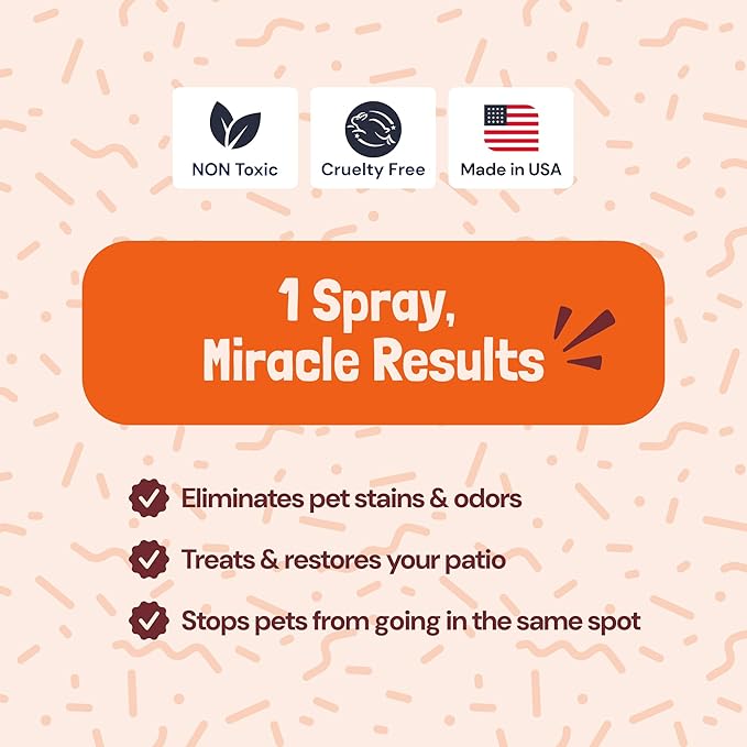 - Don’t Replace Your Patio: Restore it instead! The enzymes in our turf spray for dog urine break down & digest pet waste, preventing further damage. Simplify cleaning, while protecting your garden, with our artificial turf cleaner for pet urine outdoor