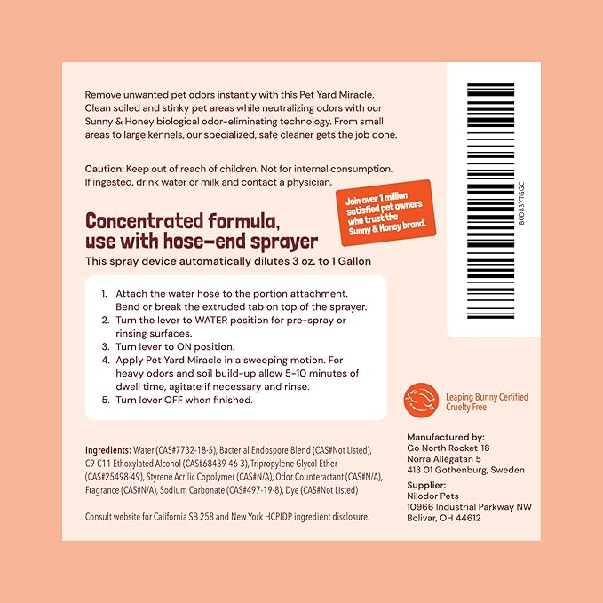 Sunny & Honey Turf Cleaner For Pet Urine Outdoor - Kid & Pet Safe - Artificial Grass Dog Urine Cleaner - Long Lasting Scent - Artificial Grass Cleaner - All Outdoor Surfaces - Orange, 32oz