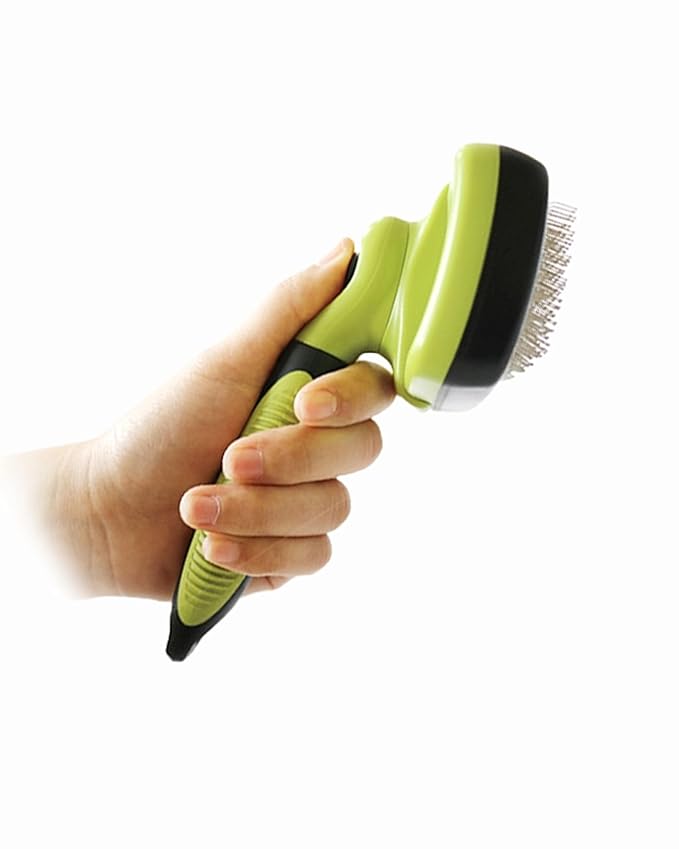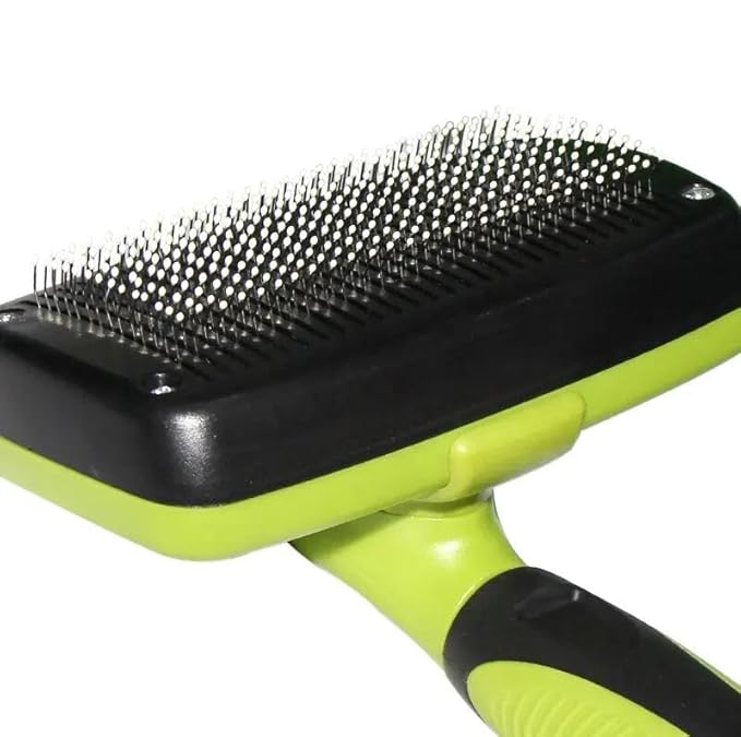 Pet Hair Slicker Brush, Pet Grooming, Smooths Pet Coat, Cat and Dog Slicker Hair Brush, Removes Loose Fur, Ideal for Short to Long Hair, Comfortable Grooming., Regular, Green