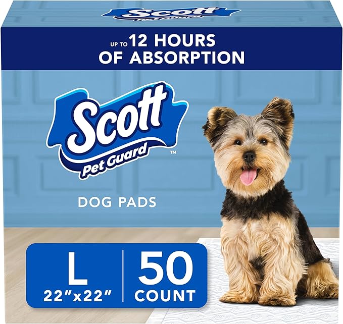 - 50 count of Scott Pet Guard Dog Pee Pads, size Large (22" x 22")