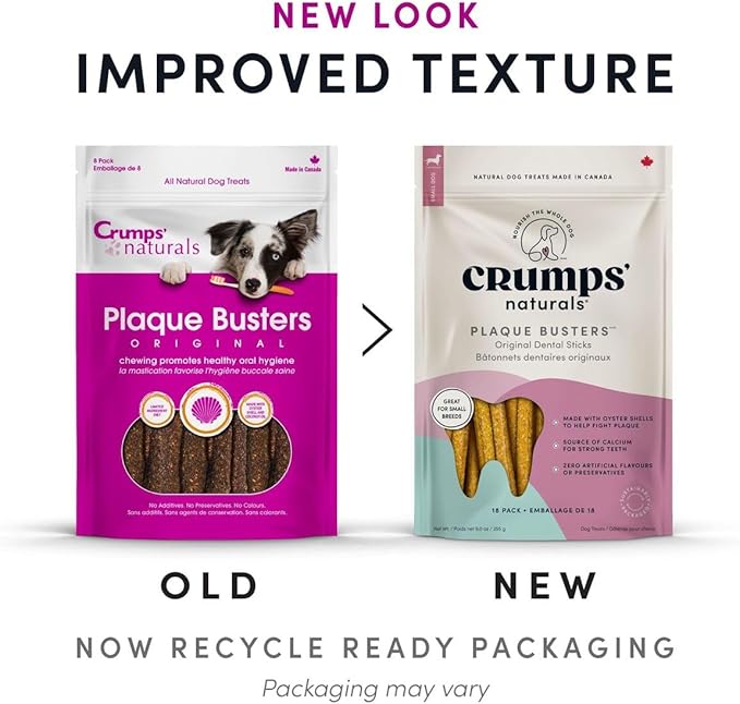 Crumps' Naturals Plaque Busters 3.5" (18ct) 9.0oz/255g Dog Dental Treat (Pack of 2)