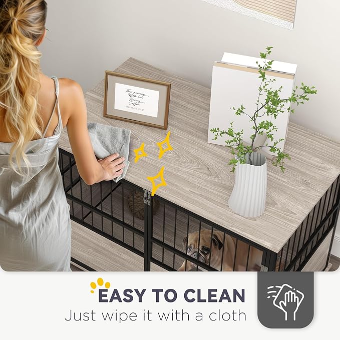 - Versatile Dog Crate Table: Provides a haven for your furry companions while also serving as a side table for you. Place anything from TV remotes to night lights on the flat surface. It meets the needs of everyone, including your dog and your home.