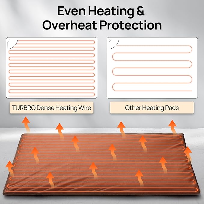 TURBRO 48x28” Extra Large Pet Heating Pad, Electric Heated Dog Bed for Large Breeds, Air Valve Design, Anti-Bite Cord, Ultra-Soft and Anti-Slip Cover, Outdoor and Indoor Use, UL Test Passed, Brown