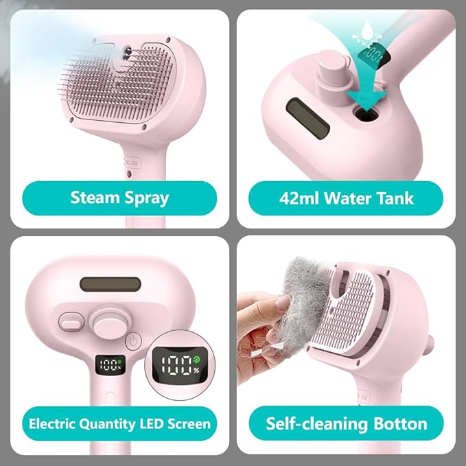 Spray Pet Brush for Shedding, Dog Cat Steam Comb for Pets Grooming with Spray Container EDR Anti-Static Suits for Long&Short Hair Pets