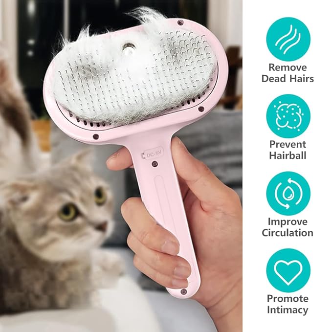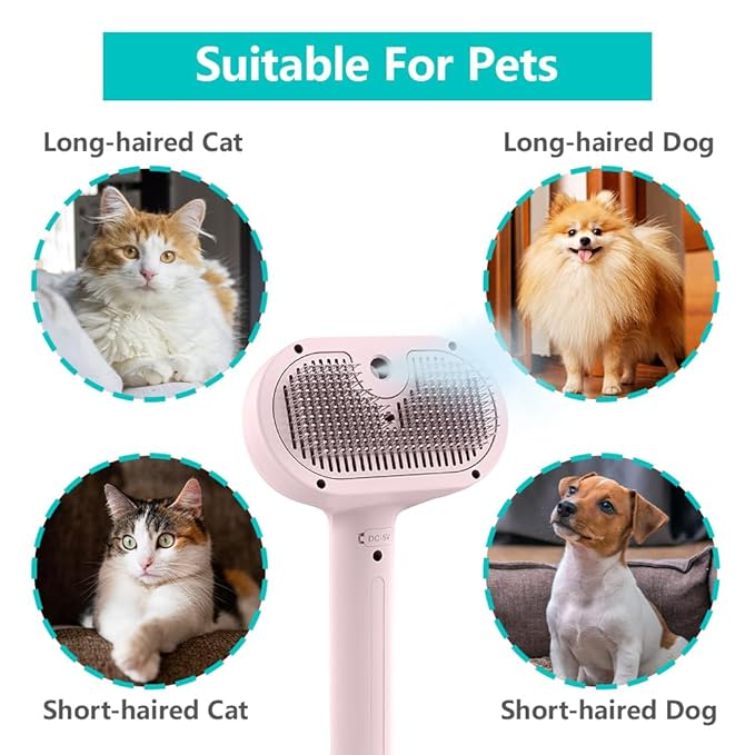 - [UNIQUE SPRAY DESIGN] Revolutionize your pet grooming routine with the Spray Pet Brush for Shedding. Featuring a built-in spray container, it allows you to moisten your pet's coat as you groom, reducing shedding and ensuring a smooth, tangle-free finish.