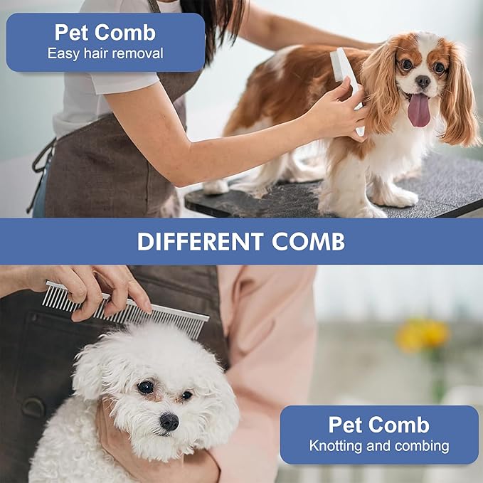 - Multifunctional Design: This set contains 7 tools, covering all aspects of pet grooming. They include a cat brush with a release button for quick and easy hair removal; a flea comb set to effectively remove fleas from pets; a depilatory cat brush for hair removal for long-haired pets; and a nail clipper file set for safely and effectively trimming and shaping your pet's nails.