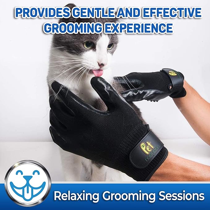 - For All Pets: Works on Dogs, Cats, and Horses. Our grooming gloves are designed to cater to the grooming needs of all pets or any other furry friend, our versatile gloves are perfect for them. With their adjustable strap and ergonomic design, you can groom, massage, and care for all kinds of animals, ensuring their coats are healthy and well-maintained.