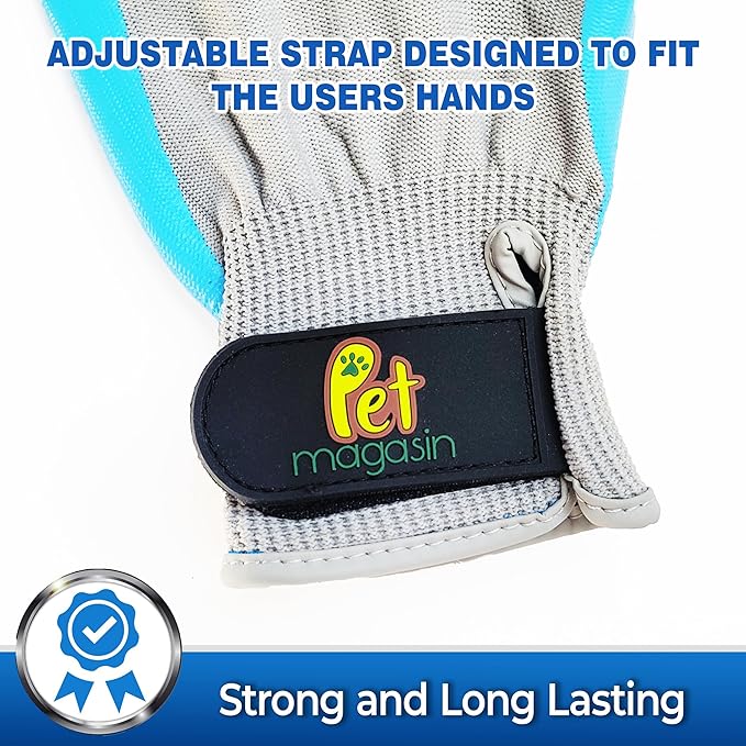 PET MAGASIN Dog Grooming Gloves for Gentle Deshedding and Bathing (Blue, Medium)