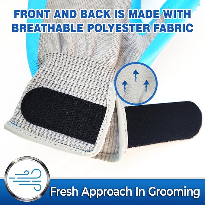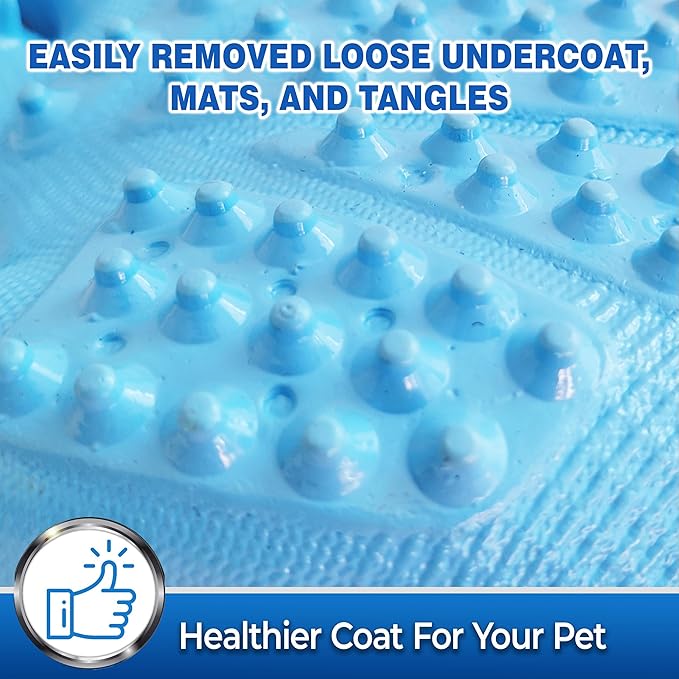 - No More Shedding: Effortlessly eliminate shedding, mats, and tangles with our grooming dog gloves. These gloves also provide a soothing massage, promoting better blood circulation and a healthier coat for your pets.