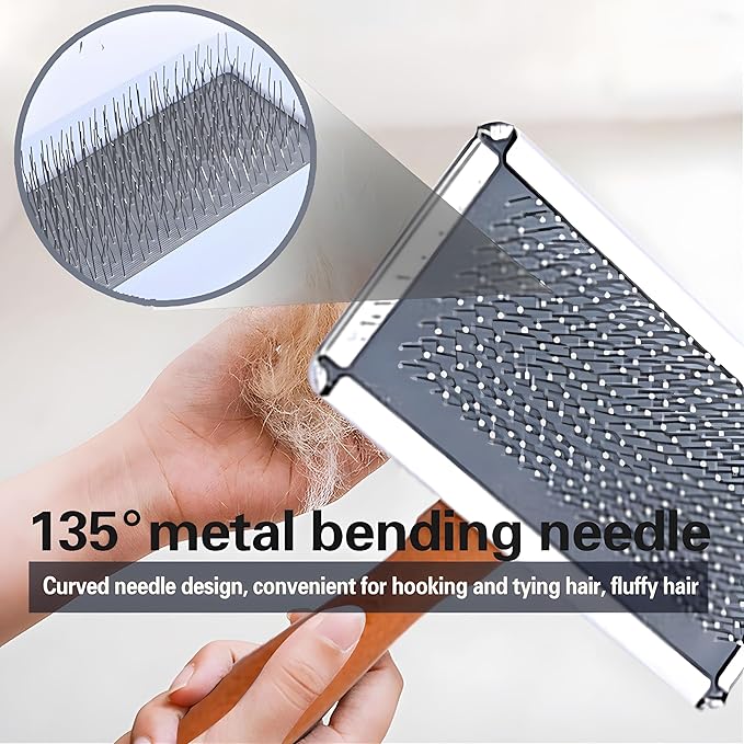 - No pain trimming brush with Wooden Handle provide massage for pets which increase blood circulation. Bristles with fine bend wires no hurting or scratching your pet skin when comb deep into the undercoat.