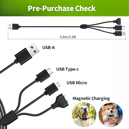 - [3-in-1 USB Cable] 3-in-1 USB Cable with Magnetic Charging, Type-C and Micro USB Cable Cord, the magnet holds your collar in place works well. Splitter cable support USB C and Magnetic Charging Cable charging at the same time, Charge your shock collar and remote at the same time