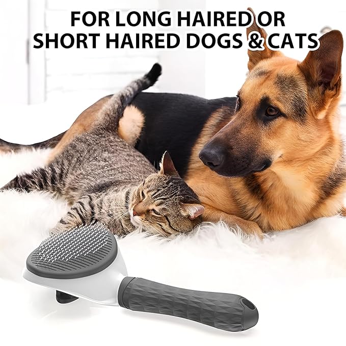 - Dual-Action Grooming Tool: Combines a pet massaging tool with a slicker brush for effective de-shedding, detangling, and grooming. Perfect for both dogs and cats of all fur types!