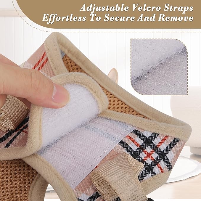 - High-Quality Materials: Our small dog harness uses durable polyester material to ensure long-lasting durability and strength. The breathable inner mesh structure provides excellent air circulation, preventing pets from overheating during activities.