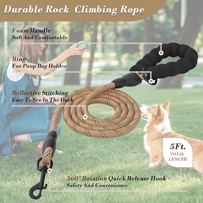 - Dog Harness and Leash Set: This plaid dog harness and leash set features a comfortable padded handle and a swivel safety hook for secure attachment to the harness. The 5 ft leash is made from heavy-duty climbing rope and features safety reflective threads, making it perfect for daily walks, runs, and training sessions.