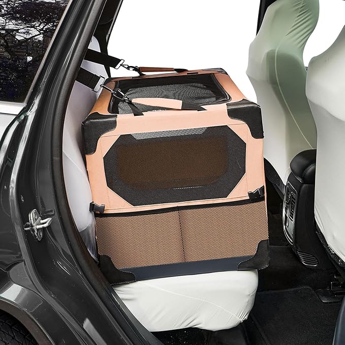 - ?�Easy Use & Maintenance?? The 26'' portable dog crate for cars is fully assembled and can be set up and folded in seconds without any tools. It features a waterproof fabric, which can be easily cleaned with a damp cloth. The removable mat and machine-washable cloth simplify care. This indoor and outdoor dog crate has side pockets for conveniently storing snacks, leashes, waste bags and other necessities. It is very suitable for travel