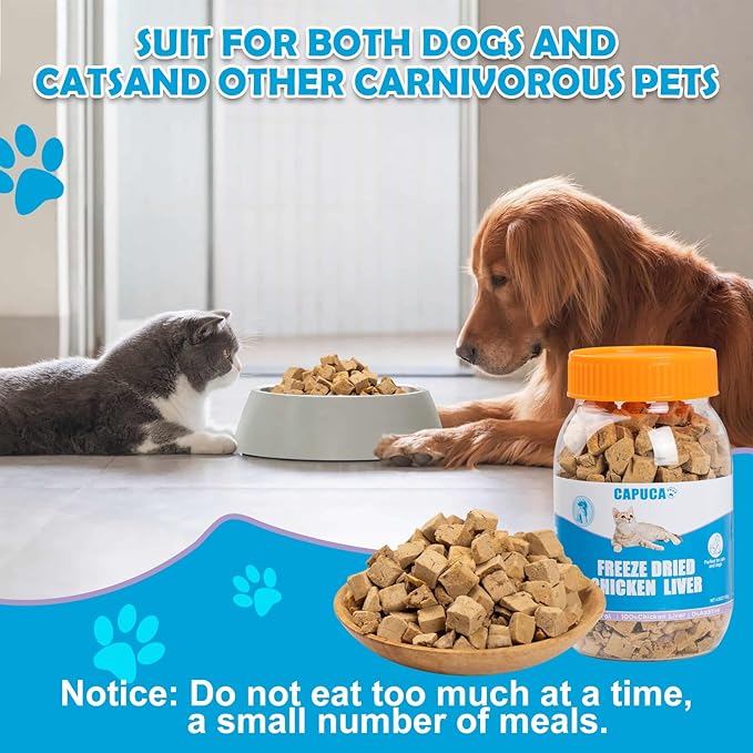 - Rich in nutrition: freeze dried chicken liver for cats is rich in high-quality protein, vitamins and minerals, which can provide nutrition, enhance immunity, Supports strong muscles.Convenient and portable: Our freeze dried cat treats come in a handy jar that can be easily closed and taken with you wherever you go, perfect for training, snacks and rewarding your dog or cat's friends
