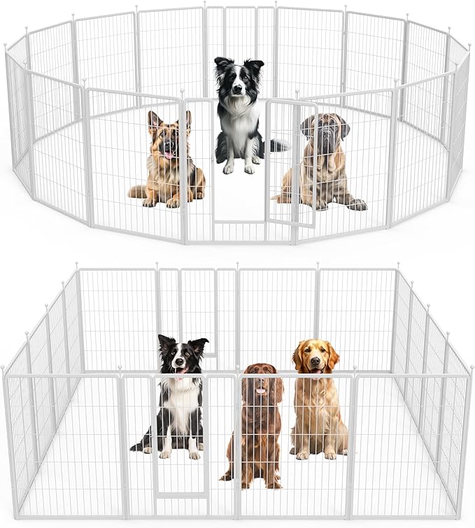 Simple Deluxe Dog Playpen, 40" Height 16 Panels Fence with Anti-Rust Coating, Metal Heavy Portable Foldable Dog Pen for Medium/Large Dogs RV Camping, White