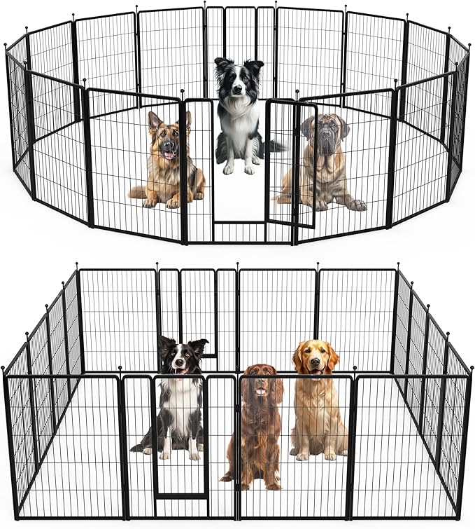 - 【Portable & Stackable Design】This dog playpen for medium/large dogs indoors is ideal for on-the-go use or space organization. Foldable for storage makes it easy for package and transportation.