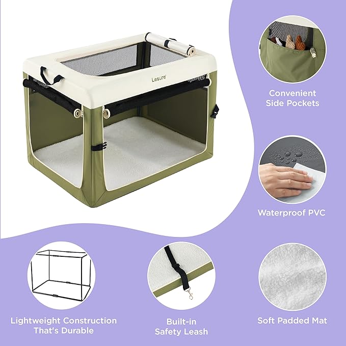 Lesure Collapsible Travel Dog Crate for Small Dogs, Portable Soft Dog Crate for Outdoor & Indoor, Folding Fabric Dog Kennel with Handle, 42 Inch Heavy Duty Pet Carrier (Green)
