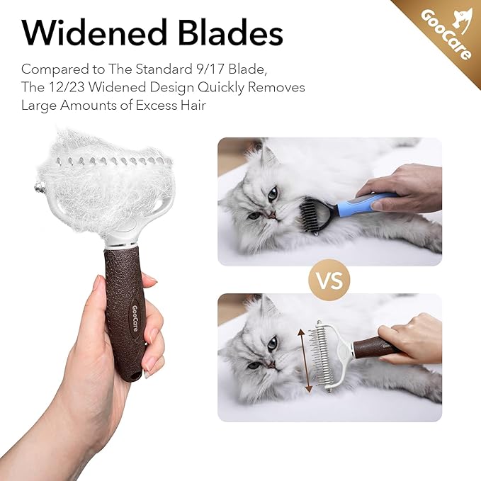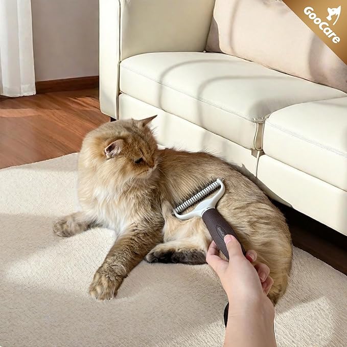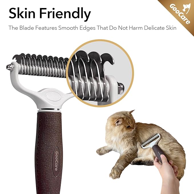 - Professional Grooming Tool: The Dual-Sided Undercoat Rake by GooCare is your professional pet care solution. Designed to give your pets a smooth and clean appearance, it’s perfect for medium to long-haired cats, dogs, rabbits, and more. The sturdy stainless steel blades easily cut through stubborn mats and tangles without pulling, keeping the coat healthy