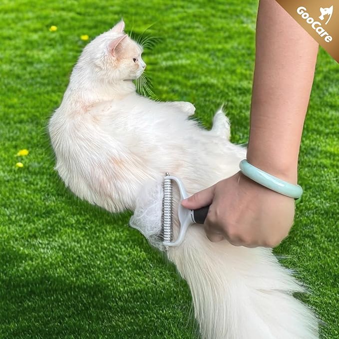 - Professional Grooming Tool: The Dual-Sided Undercoat Rake by GooCare is your professional pet care solution. Designed to give your pets a smooth and clean appearance, it’s perfect for medium to long-haired cats, dogs, rabbits, and more. The sturdy stainless steel blades easily cut through stubborn mats and tangles without pulling, keeping the coat healthy
