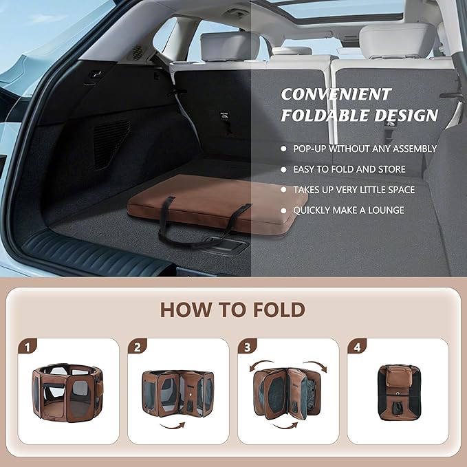 Dog Playpen, Cat Dog Crate Portable Pet Exercise Cage Kennel House Puppy Playpen Animal Playpen Indoor/Outdoor, Water-Resistant Kennel Tent with Traveling Bag (Brown, Large)