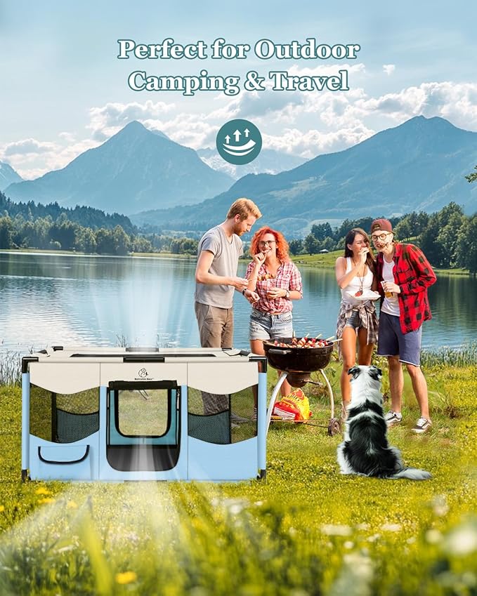 - 【360° Visible & Breathable Mesh】: The dog kennel is made from breathable mesh, allowing your pet to enjoy fresh air and stay comfortable. With the see-through mesh, you can keep an eye on your pet from any angle, and your pet can also see the outside, which helps them feel secure. Compared to metal kennels, our dog kennel is made of soft Oxford fabric, so you don’t have to worry about your pet getting hurt