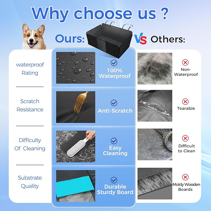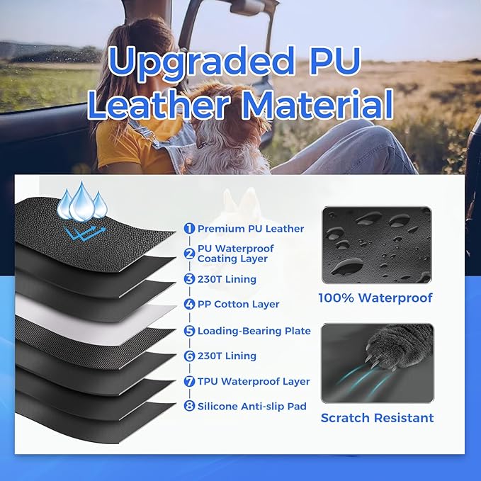 - 【Waterproof PU Leather】Unlike Oxford material, our dog car seat cover for back seat is made from 100% waterproof, scratch-resistant PU leather. The tightly stitched edges add extra durability and prevent tearing. Combined with the silicone non-slip backing, it keeps the cover in place and prevents your dog from slipping, providing an added layer of safety during drives