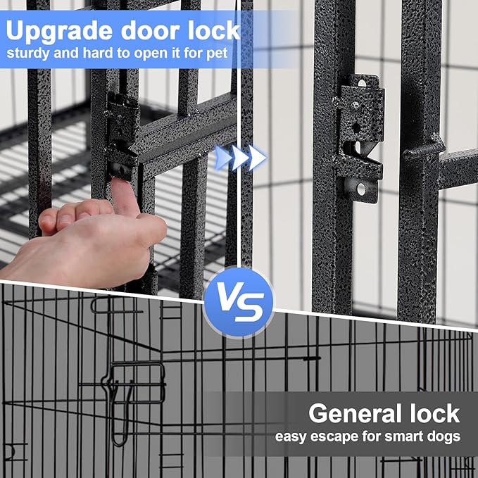 - UPGRADED DOOR LATCHES TO PREVENT ESCAPE: Double sturdy sliding latches ensure ultimate security. No more worrying about your dog slamming the door too hard or for too long causing the latch to open and escape the cage. All of this makes our dog crate chew-proof and escape-proof. It is perfect for large, strong and dogs with separation anxiety.