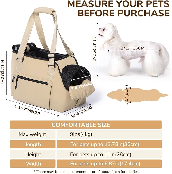 - STYLISH AND FUNCTIONAL: Our pet purse carrier features a waterproof, durable fabric, convenient side pockets for storage, and an adjustable shoulder strap, combining fashion with versatility for multiple carrying options. Can also be used as center console dog car seat for small dogs.