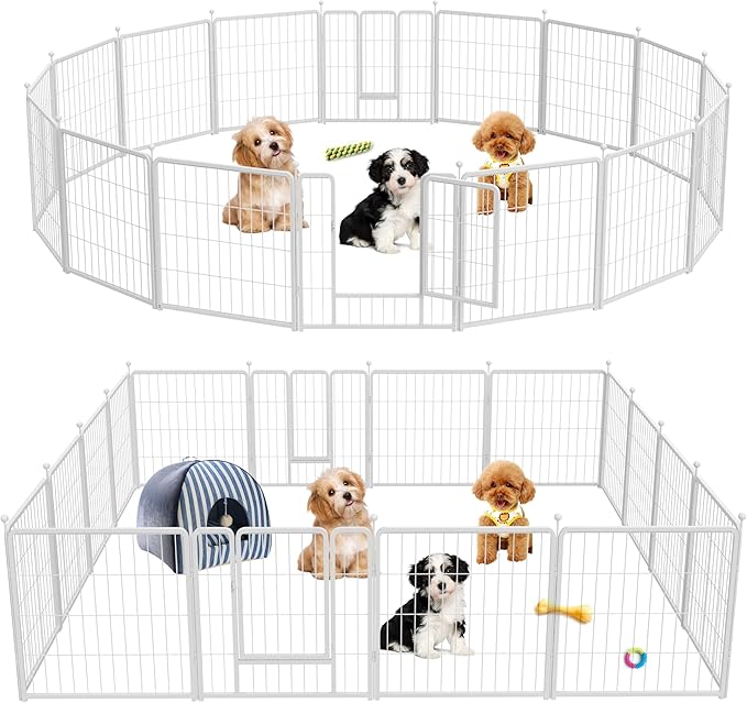 HealSmart Dog Playpen Indoor, Puppy Playpen Indoor Outdoor for Yard, Camping, RV, 24" Height 16 Panels Heavy Duty Dog Pen for Puppies/Small Dogs, White