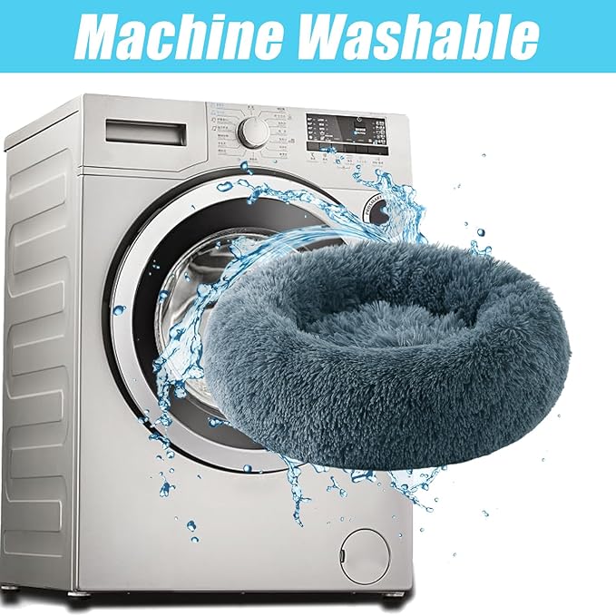 - 【Great Place For A Snooze】This donut dog bed is designed with a raised, cushioned outer furry ring and a plush, padded center, resembling a donuts. The raised sides provide support for your pet’s head and neck, while the soft center offers a warm and comfortable sleeping surface, allowing your pet to have a more comfortable sleep.