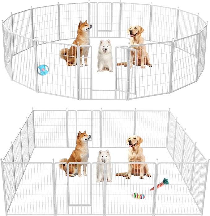 - 【Easy Assemble & DIY Shapes】Each panel is a separate piece. The panels could be assembled in just a few minutes without tools. You could DIY the dog pen to any shape you need, like square, rectangle, round, etc according to your house, garden or lawn.