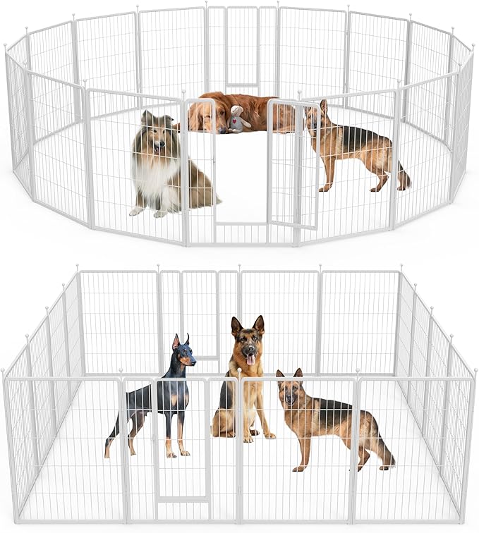 HealSmart Dog Playpen Indoor, Puppy Playpen Indoor Outdoor for Yard, Camping, RV, 40" Height 16 Panels Heavy Duty Dog Pen for Medium/Large Dogs, White