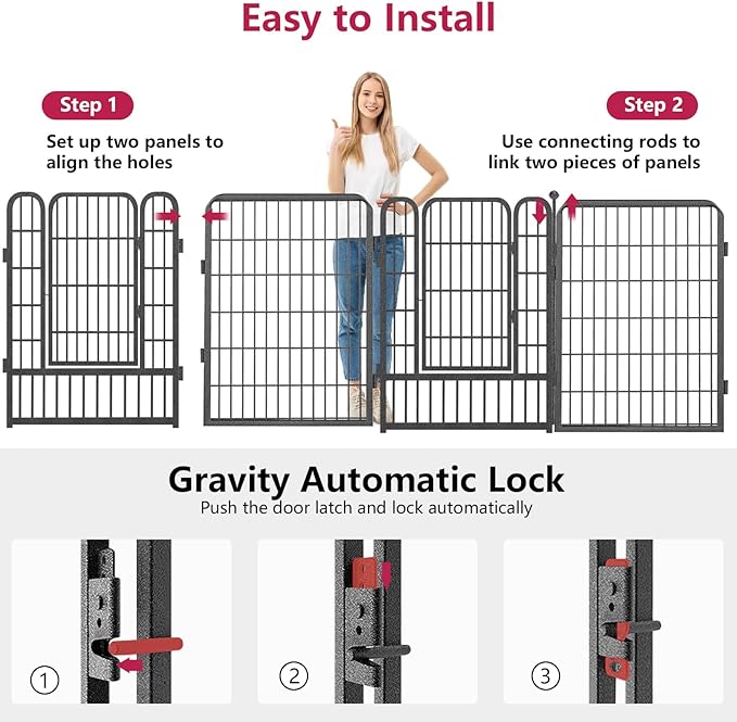 - 【Upgraded Size & Large Space】: This dog playpen outdoor is 27 "W x 40" H, upgraded to a larger size and more steel wire connections, available for 10-40 panels of different sets and a maximum space of 669 square feet. This interactive pet pen is suitable for small/medium/large dogs and other animals, such as Labrador dogs, golden dogs, wolf dogs, puppies, cats, rabbits, ducks, chickens, and rabbits
