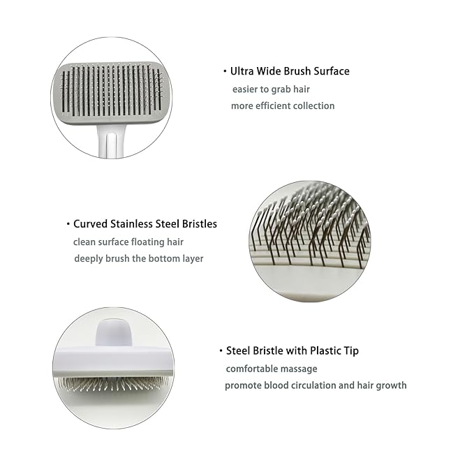 - One-click Cleaning Button:Cat brush with release button.After brushing your pet,press the button to easily remove hair from dog grooming brushes