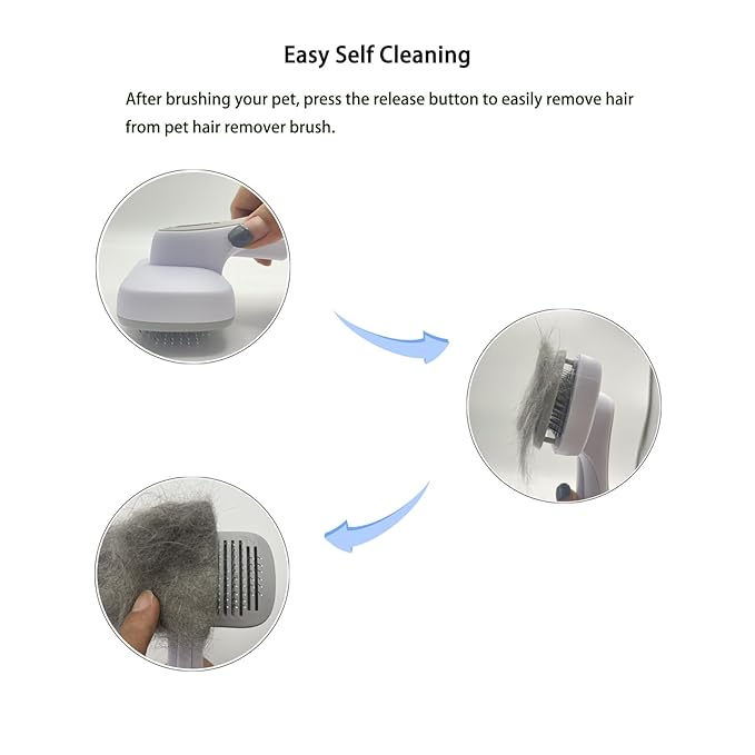- Enrich the Experience:This pet hair remover brush have blue,green,pink,and gray colors.Self cleaning hair brush suitable for cats,dogs,and pet bunnies with short,long,fluffy,or curly hair