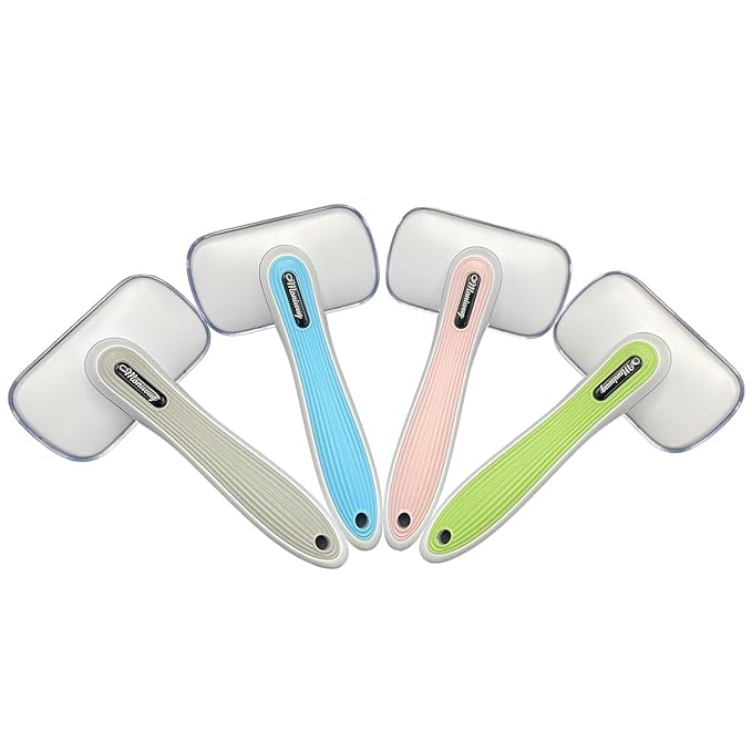 - Enrich the Experience:This pet hair remover brush have blue,green,pink,and gray colors.Self cleaning hair brush suitable for cats,dogs,and pet bunnies with short,long,fluffy,or curly hair
