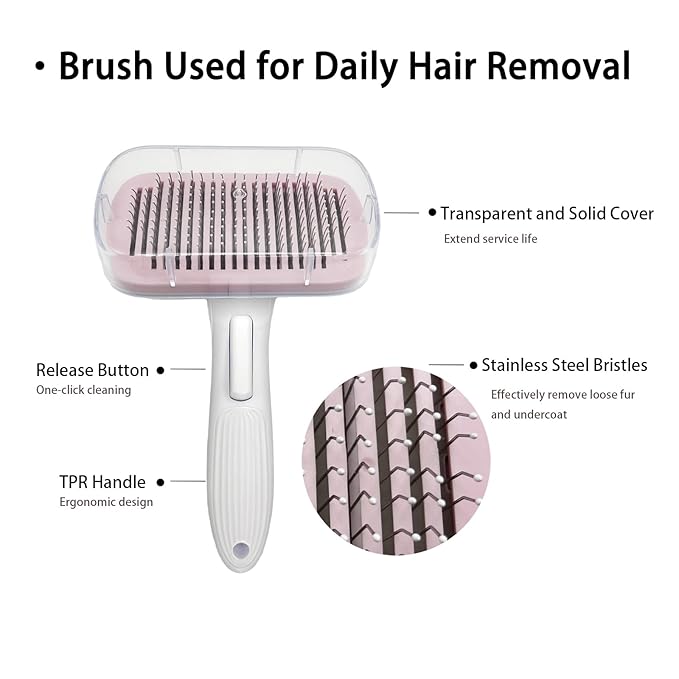 - One-click Cleaning Button:Cat brush with release button.After brushing your pet,press the button to easily remove hair from dog grooming brushes