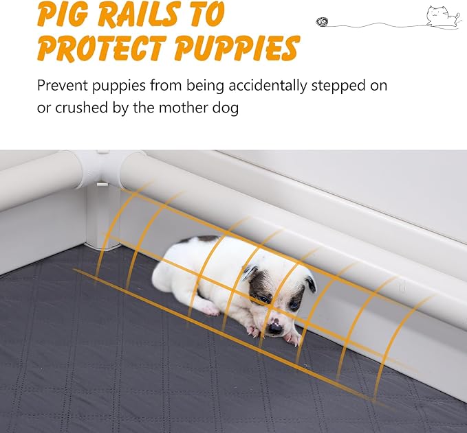 - SAFE AND COMFORTABLE - The whelping box for dogs creates a comfortable birthing environment, allowing puppies to grow in a safe environment. The internal rail design prevents puppies from suffocating and being crushed, and the closed environment is convenient for managing puppies.