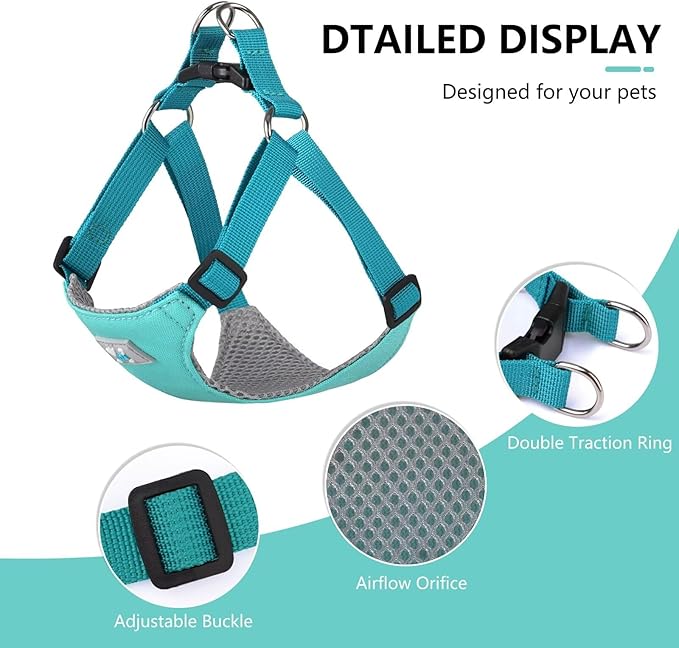 - Matching Leash: The puppy harness comes with a matching color dog strap. The 360 ° rotating metal buckle is easy to hook and avoid entanglement, no need to purchase additional dog chains